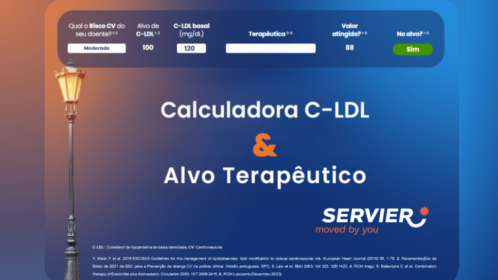 A nova calculadora de colesterol LDL e alvos terapêuticos da Servier foi desenvolvida para ajudar os médicos a identificar, de forma rápida e eficiente, a terapêutica mais adequada para cada doente, com base no risco cardiovascular do doente e respetivo alvo de C-LDL que deverá atingir para estar protegido de um evento cardiovascular. Esta ferramenta permite que, ao inserir o C-LDL basal e a terapêutica proposta, o médico possa simular se o doente atingirá o alvo de C-LDL preconizado pelas Guidelines. Desta forma, facilita-se uma decisão mais informada, promovendo uma maior proteção dos doentes contra futuros eventos cardiovasculares.