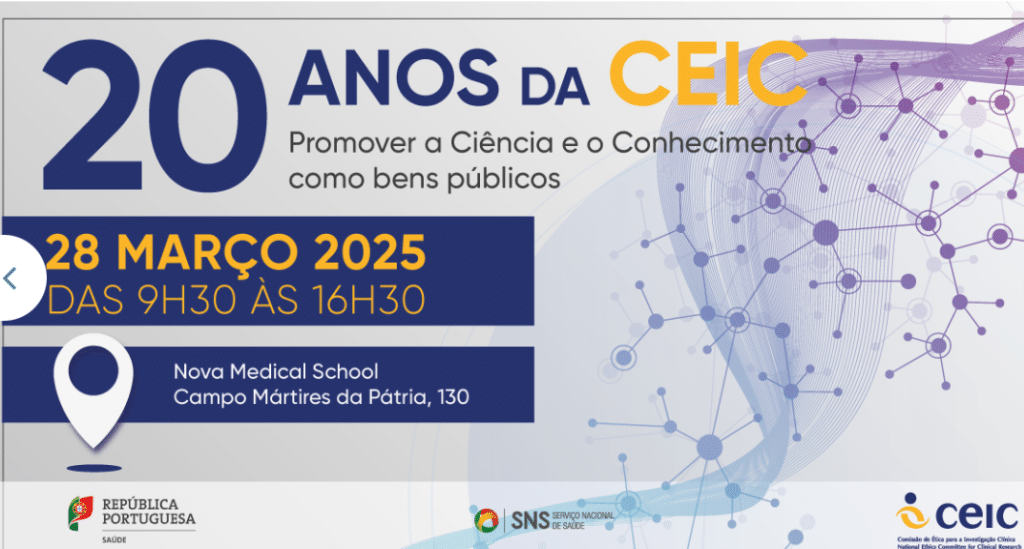 A CEIC – Comissão de Ética para a Investigação Clínica vai celebrar 20 anos, indo-se realizar, para assinalar a data, uma sessão comemorativa, a 28 de março, pelas 9h00, na Sala dos Atos da Nova Medical School (NMS), Campo Mártires da Pátria, em Lisboa.