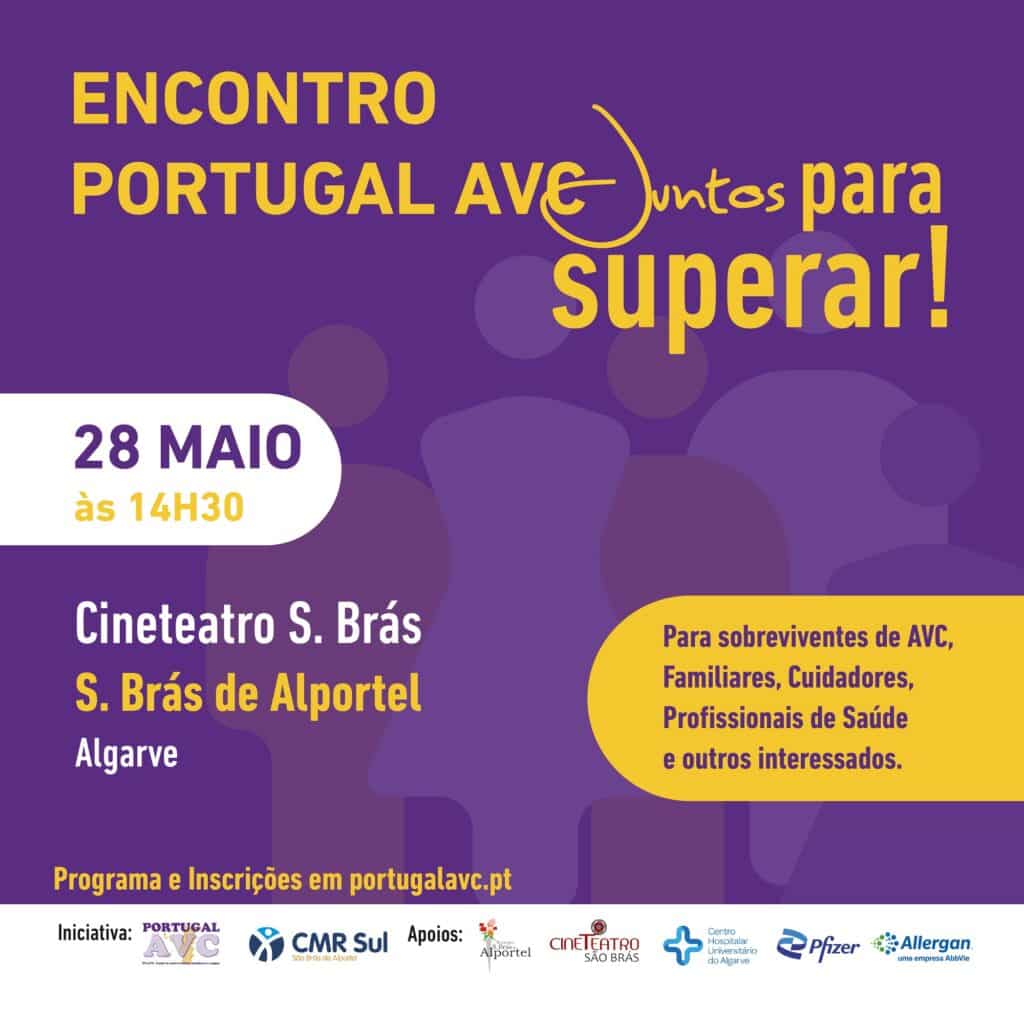 A Portugal AVC – União de Sobreviventes, Familiares e Amigos promove o “Encontro Portugal AVC – Juntos Para Superar!”, no dia 28 de maio, pelas 14h30, em S. Brás de Alportel, no Algarve, em parceria com o Centro de Medicina Física e Reabilitação do Sul, que faz parte do Centro Hospitalar e Universitário do Algarve. Sobreviventes de AVC, Familiares/Cuidadores e Profissionais de Saúde, encontram-se para abordarem a importância da reabilitação multidisciplinar, quer logo após o AVC, quer no reconhecimento de que há uma vida após o AVC, que merece ser vivida com qualidade.