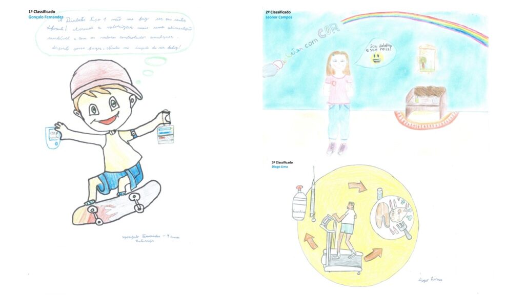 Gonçalo Fernandes (1º), Leonor Campos (2º) e Diogo Lima(3º) são as crianças vencedores desta primeira edição do concurso que pretendeu sensibilizar para a diabetes mellitus tipo 1 (DM1) em idade pediátrica, estimulando as crianças com a patologia a desenharem o que para elas representa a diabetes e os seus desafios.