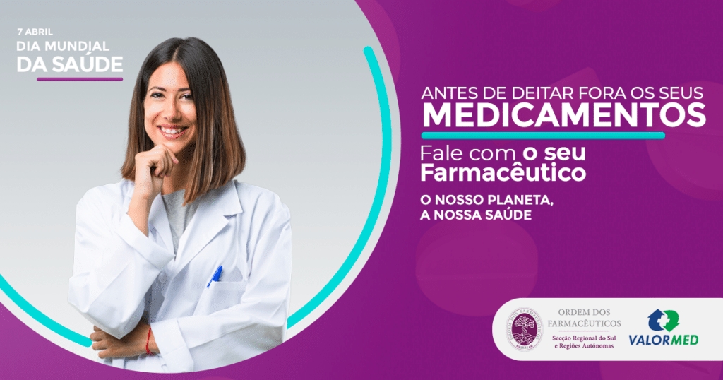 No âmbito do Dia Mundial da Saúde, instituído pela Organização Mundial da Saúde (OMS), que se comemora a 6 de abril, sob o mote “Our Planet, Our Health”, a Secção Regional do Sul e Regiões Autónomas da Ordem dos Farmacêuticos (SRSRA-OF) desenvolveu uma campanha sob o mote “Antes de deitar fora os seus Medicamentos, fale com o seu Farmacêutico”.