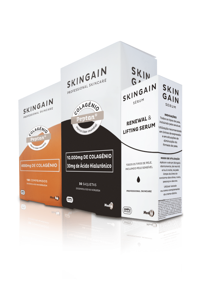 Porém, Skingain, como referido em comunicado, retarda o processo de envelhecimento da pele, visto conter Peptan® (marca de peptídeos de colagénio), que é “facilmente digerido e absorvido, ficando altamente disponível na corrente sanguínea, para ser transportado para os tecidos-alvo”.