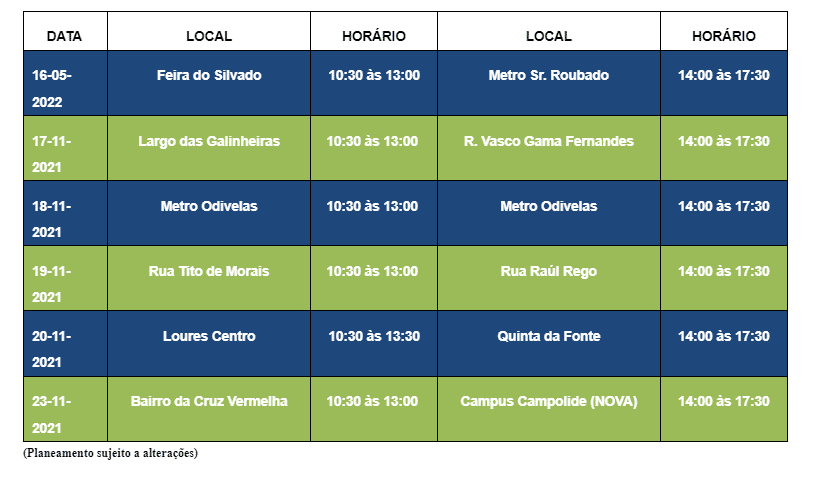 Nos dias e horários na imagem indicados, será possível a realização de testes rápidos em diversos locais dos concelhos de Lisboa, Odivelas e Loures. A iniciativa Europeia tem como objetivo alertar para a importância do diagnóstico precoce através da realização de rastreios ao VIH e outras IST e insere-se no programa das Fast Track Cities, do qual estes municípios fazem parte.