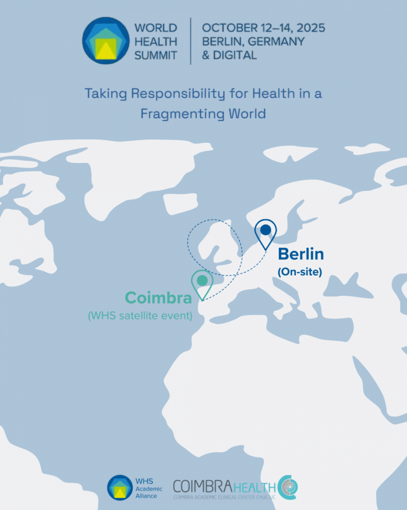 A Universidade de Coimbra (UC) vai promover, em outubro, um evento paralelo da Cimeira Mundial da Saúde (World Health Summit – WHS), organizada anualmente em Berlim. O evento realiza-se nos dias 12, 13 e 14 de outubro de 2025.