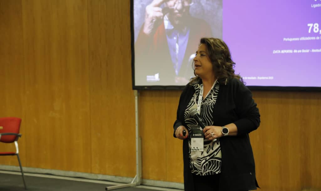 Na imagem da apresentação que trouxe ao Centro de Congressos de Lisboa, Isabel Lima mostrou a cara de uma idosa, para depois concluir, que «a conetividade mudou o mundo. O que eu ouvia há uns anos era que não vale a pena as farmácias estarem no digital porque os nossos clientes são todos velhinhos e não estão na Internet. A verdade é que o nosso país é dos cinco mais envelhecidos… só que 85% estão ligados online, portanto temos de olhar para esta senhora [na imagem] e pensar que são estes os nossos clientes da farmácia e eles estão na Internet e nas redes sociais».