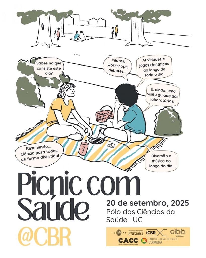 O ‘Picnic Com Saúde @CBR’ está de volta para a sua 4.ª edição, levando ciência, saúde, literacia, música e diversão ao Polo das Ciências da Saúde da Universidade de Coimbra. A iniciativa, promovida pelo Instituto de Investigação Clínica e Biomédica de Coimbra (iCBR) e pela Faculdade de Medicina da Universidade de Coimbra (FMUC), e que conta com a colaboração da Faculdade de Farmácia da Universidade de Coimbra (FFUC), realiza-se a 20 de setembro, a partir das 10 horas.