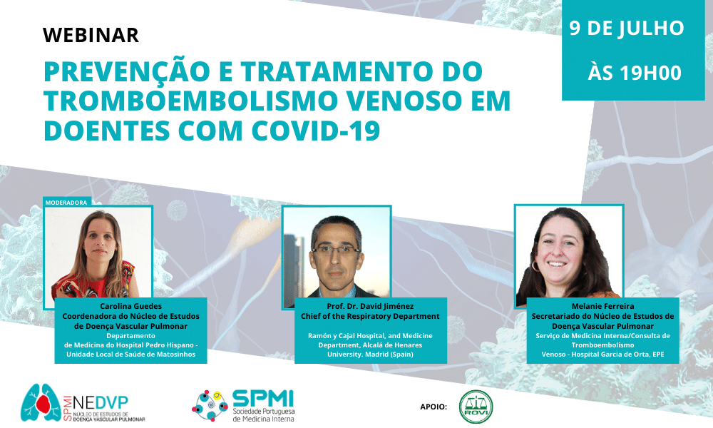 O Núcleo de Estudos da Doença Vascular Pulmonar (NEDVP) da Sociedade Portuguesa de Medicina Interna (SPMI) realiza no dia 09 de julho o webinar de “Prevenção e tratamento do tromboembolismo venoso em doentes com covid-19”.