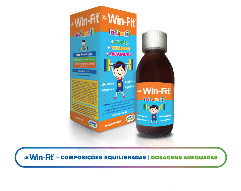 Win-Fit Infantil promete reforçar as defesas do organismo, estimular o apetite e contribuir para um saudável desenvolvimento intelectual e físico das crianças. Para tal, contém Vitamina C, Óleo de Fígado de Bacalhau, Equinácea, Vitamina D e Geleia Real, entre outros nutrientes.