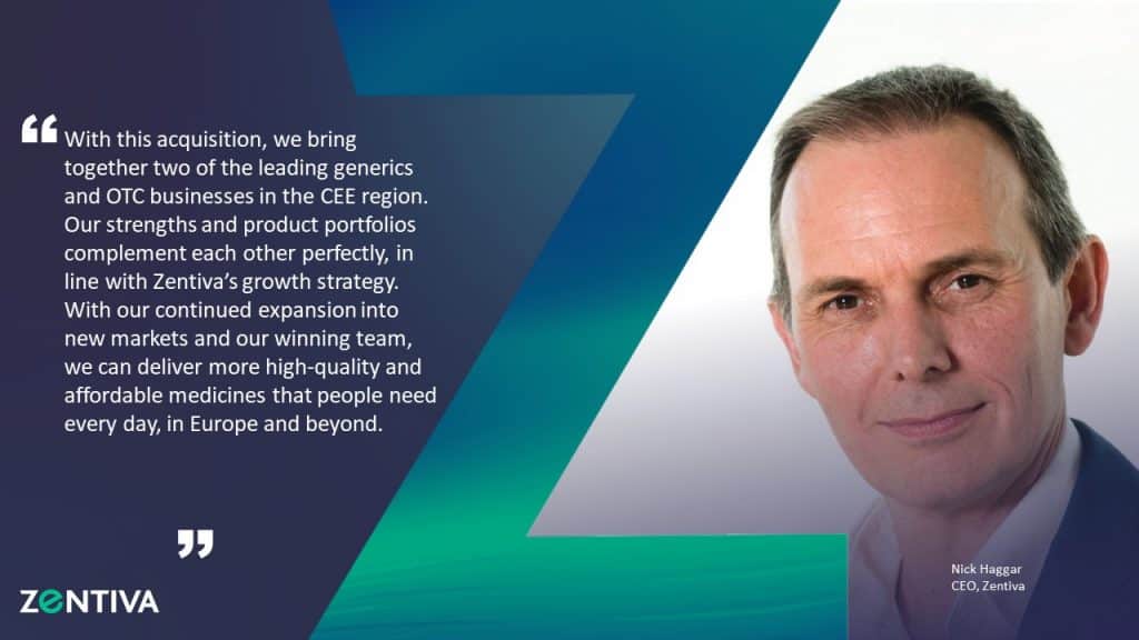 A Zentiva Group a.s. anunciou a conclusão da aquisição anteriormente declarada da Alvogen na Europa Central e de Leste (ECL). O acordo contribui para o crescimento orgânico contínuo da Zentiva, reforçando a sua presença comercial na Polónia, Roménia e Bulgária e expandindo a sua presença para novos mercados, incluindo a Rússia, Ucrânia, Cazaquistão, Hungria, Croácia e Balcãs Ocidentais. Em resultado desta aquisição, a Zentiva consegue agora oferecer uma carteira mais alargada de produtos a milhões de pessoas, dentro e fora da Europa.